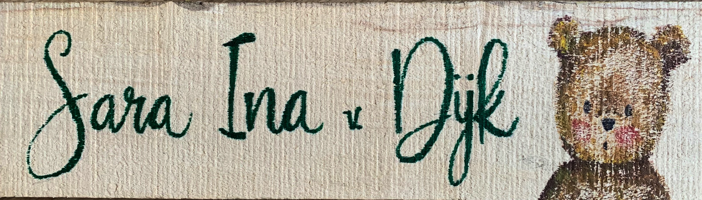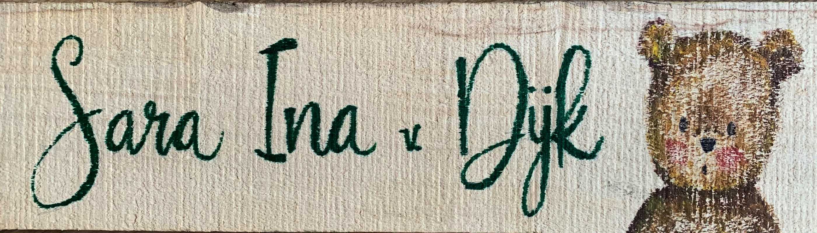 Sara Ina van Dijk, dochter van Andries Levie van Dijk en Simone Selma de Beer. De familie heeft geschuild in Doorn, waar Sara Ina naar school ging met geblondeerde haren. De familie is gesnapt. Sara Ina is negen jaar oud geworden. Haar laatste dag(en) heeft ze doorgebracht in Auschwitz.