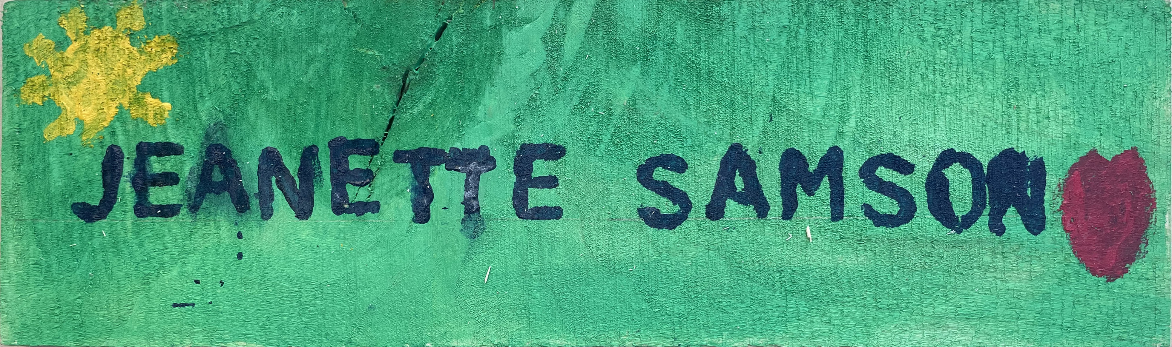 Dit naambordje is gemaakt tijdens een lezing en workshop over Namen en Nummers voor de Vrouwen van nu in Breda.