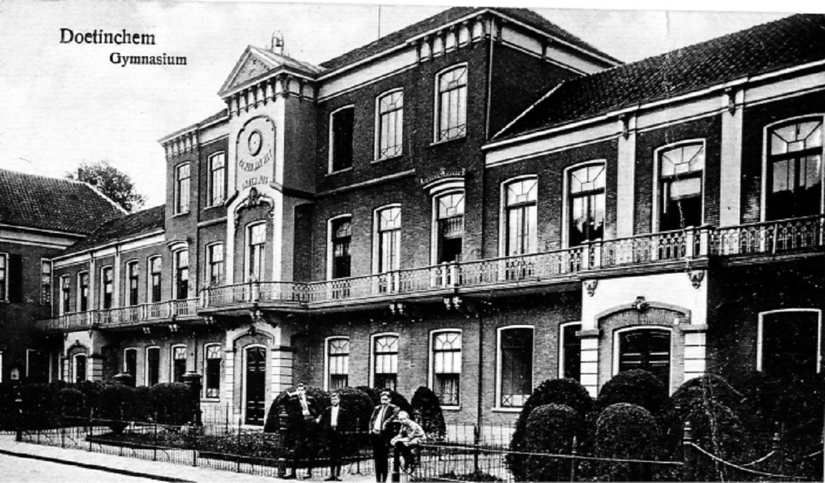 Op het naambordje zie je het Doetinchemse Lyceum aan de Van Nispenstraat. In 1968 werd het afgebroken, maar in 2011 werd het gebouw in ere hersteld: 'Het Lyceumkwartier'. Het nieuwe fietspad tussen de Baptistenkapel en het Lyceumkwartier werd het Cauverenpad genoemd.