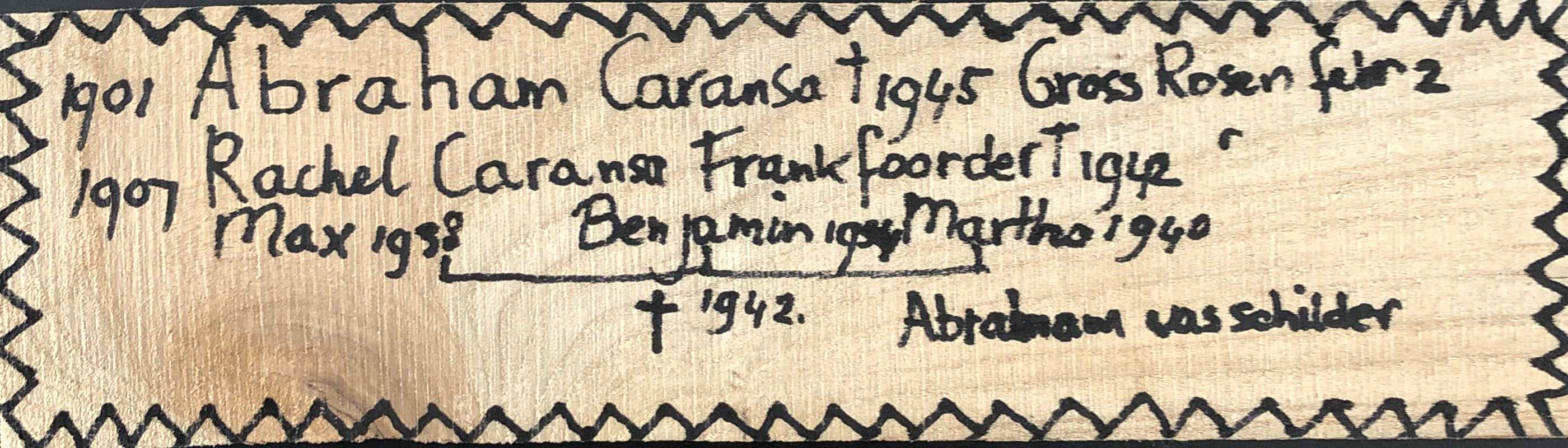Rachel Frankfoorder was getrouwd met Abraham Caransa en had drie kinderen. Abraham was huisschilder. Martha en de kinderen zijn vermoord in Auschwitz en Abraham in Gross Rosen.