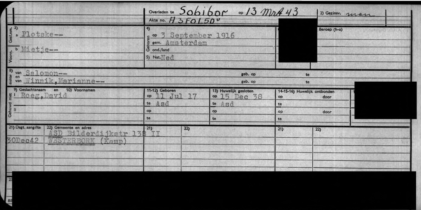 Vermoord: Sobibor, 13 maart 1943