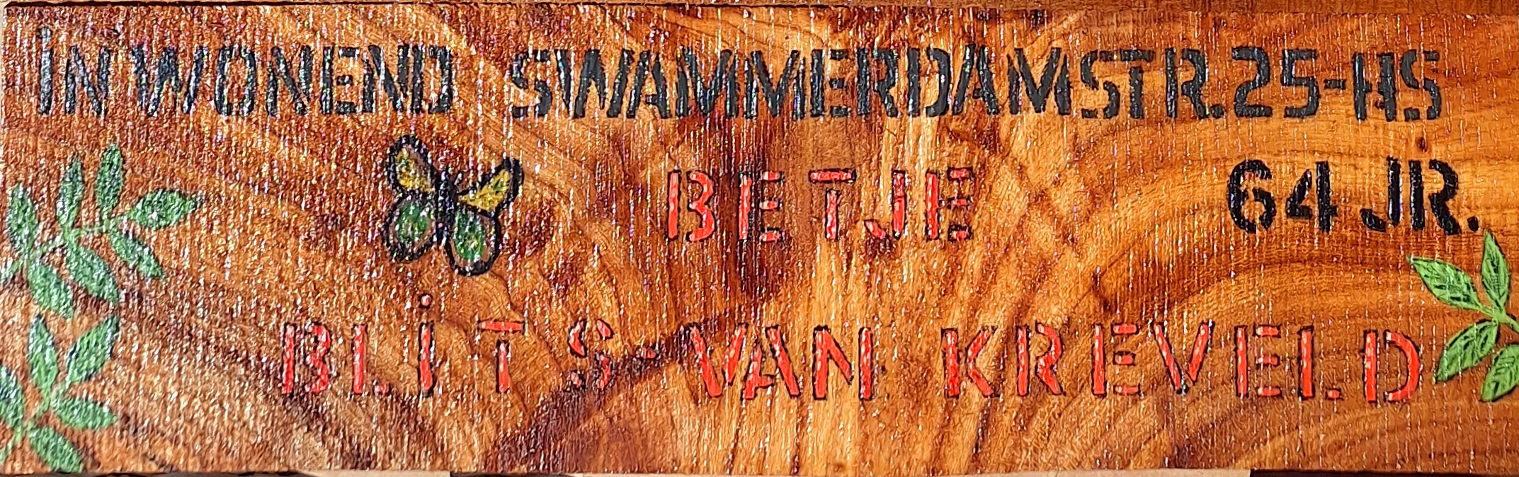 Betje woonde in de eerste twee oorlogsjaren op de Swammerdamstraat 25-hs bij de familie Vleeschhouwer. Van daar verhuisde ze naar Pension Mok op de Ruyschstraat 37.