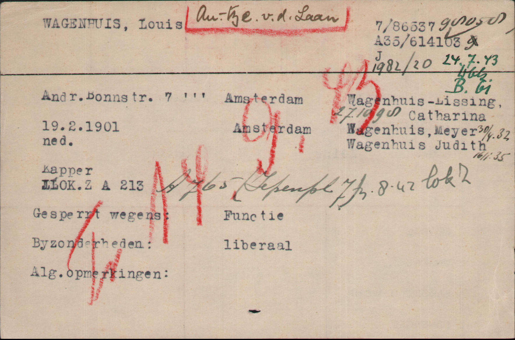 Louis had een kapperszaak en woonde met zijn gezin op het Iepenplein nr 13 in Amsterdam-Oost vanaf maart 1936. Van augustus 1938 tot april 1941 runde hij zijn zaak op het adres Iepenplein nr 7, op de  hoek Tweede Oosterparkstraat. Daarna verhuisde het gezin naar de Andreas Bonnstraat nr 7 driehoog.