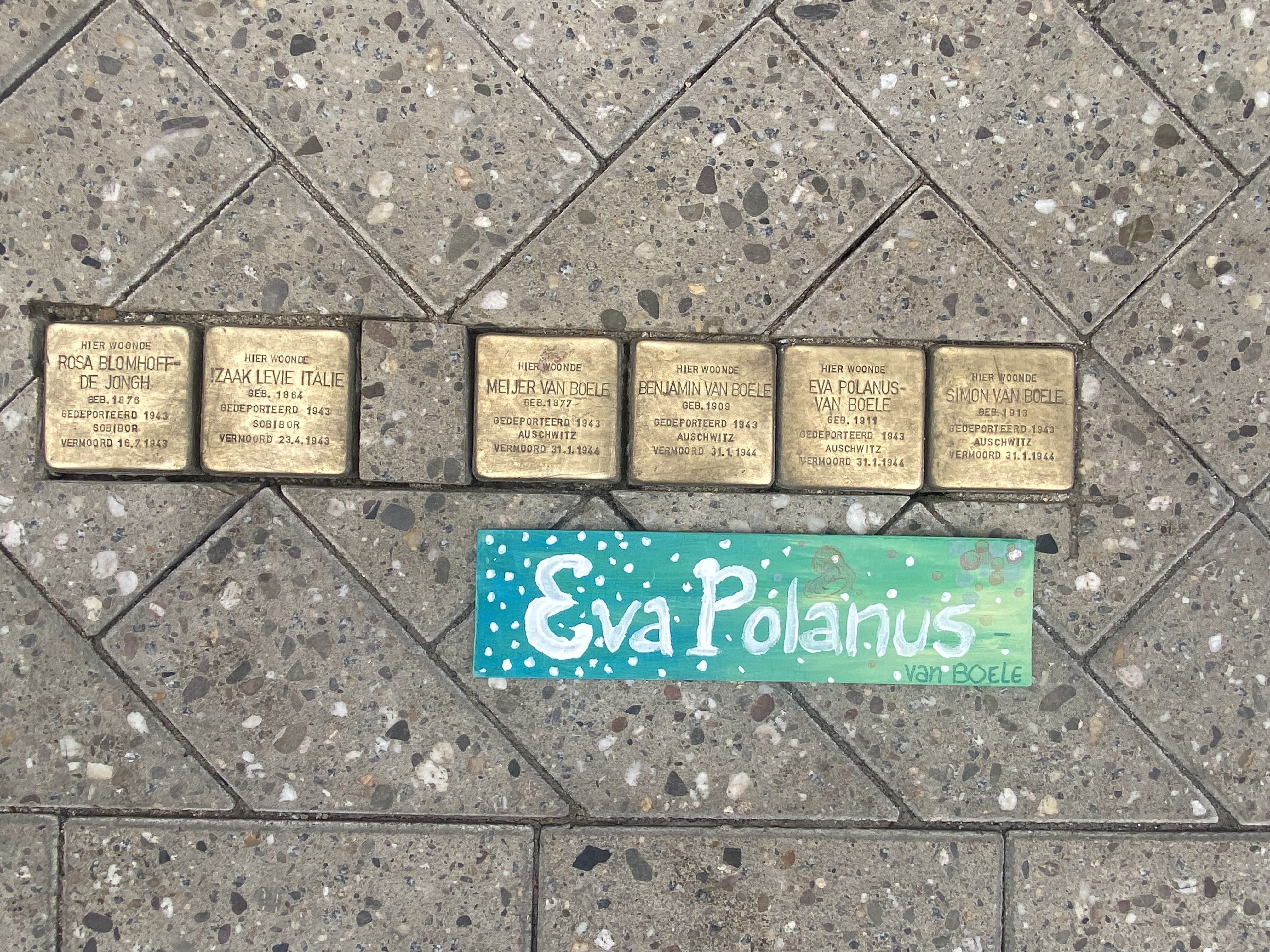 Voor Eva en haar familie zijn struikelstenen geplaatst op het Stratumseind 14 te Eindhoven