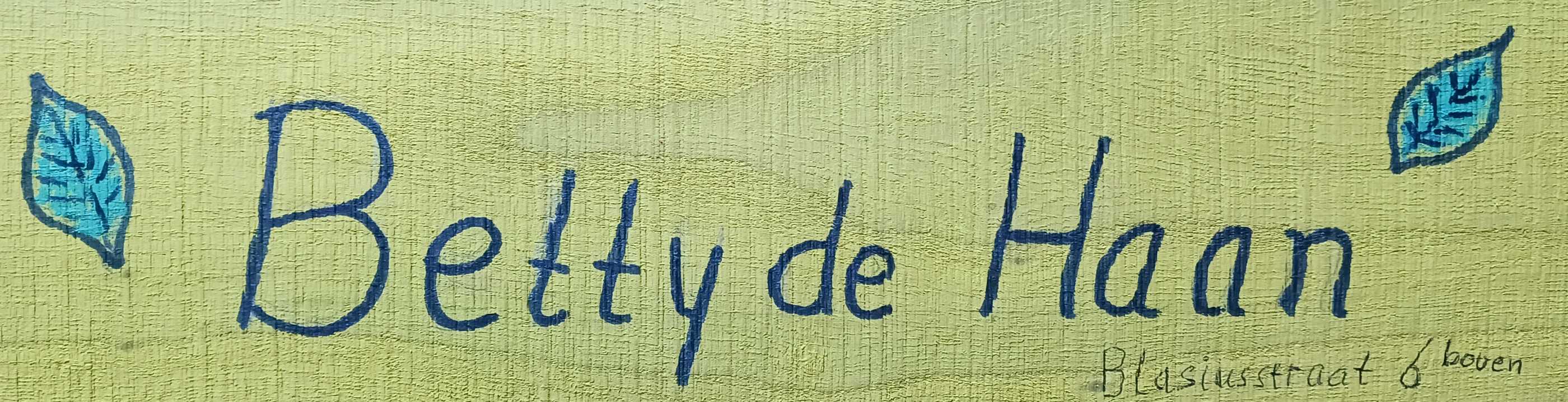 Betty de Haan (geboren in 1921) is de dochter van Penina Onderwijzer (1899) en Meijer de Haan. Meijer was een broer van Jacob Israël de Haan (1881-1924), journalist, schrijver, dichter, publicist, rechtsgeleerde en (anti-)zionist en van Carolina Lea de Haan (1881-1932), bekend als de schrijfster Carry van Bruggen. Betty had een broer Abraham Samson (1923).