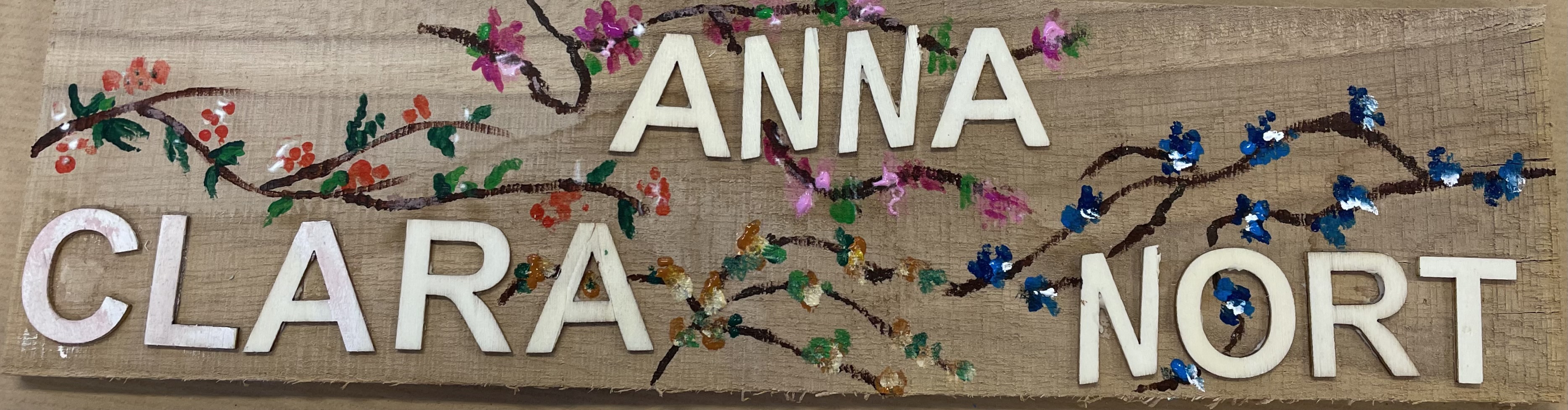 Een mooi rustig bordje met bloemetjes voor Clara Anna Nort. Gemaakt in Het Hornemann huis in Eindhoven💕🍀