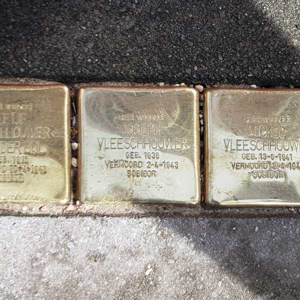 Keetje werd slechts 27 jaar oud, Jopie 4 jaar en Michel 1 jaar. Zij zijn door de familie (kleinkinderen van opa Michel Vleeschhouwer, neven en (achter)nichten  van Jopie) op 11 april 2022 herdacht met het plaatsen van Struikelstenen voor hun woning en ik heb hun namen op het Namenmonument geadopteerd.
