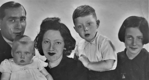 Als ik naar de foto kijk zie ik een jonge vrouw die net iets te serieus kijkt. Dat komt misschien ook door de donkere lippenstift. Mijn vader heeft een olijke blik en is zich nog nergens van bewust. Die blik, die ken ik heel goed. Mijn vader heeft naar eigen zeggen geen herinneringen aan zijn ouders. Zijn eerste herinnering begint, zegt hij, bij het moment dat hij onder een deken vandaan komt in de vrachtwagen die hem naar zijn eerste onderduikadres in Neerkant in Brabant brengt.